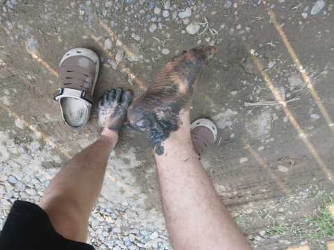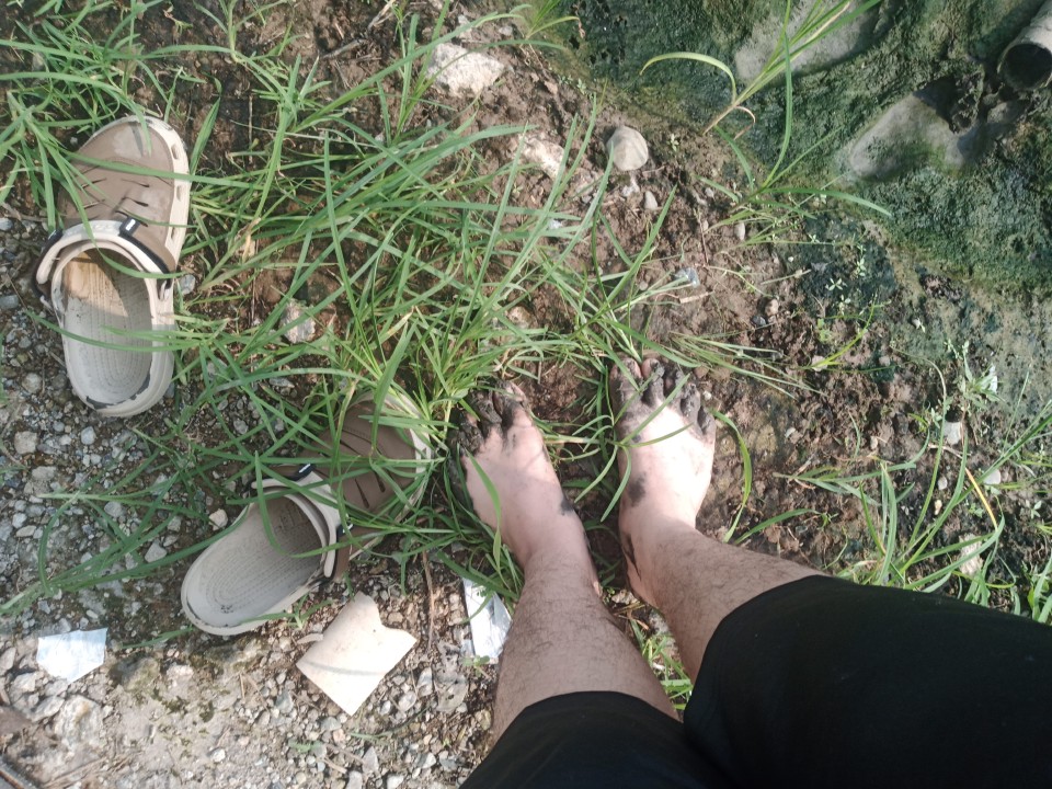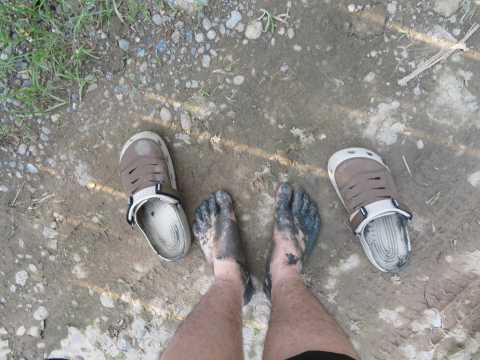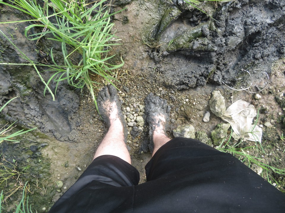 Barefoot in mud