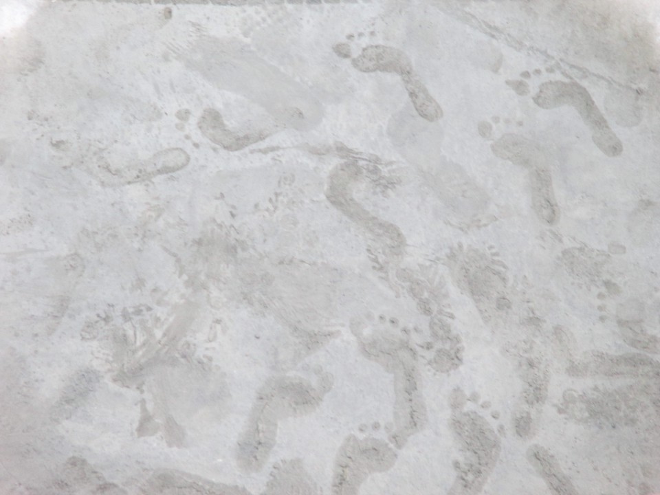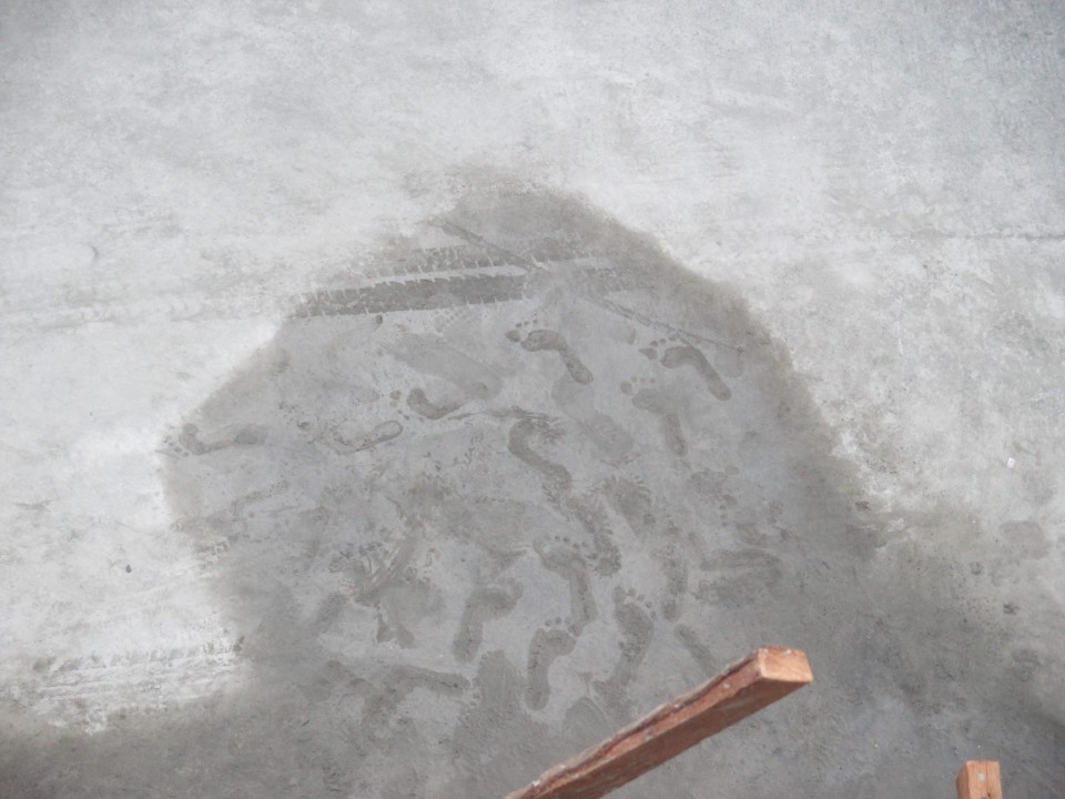Barefoot in wet cement