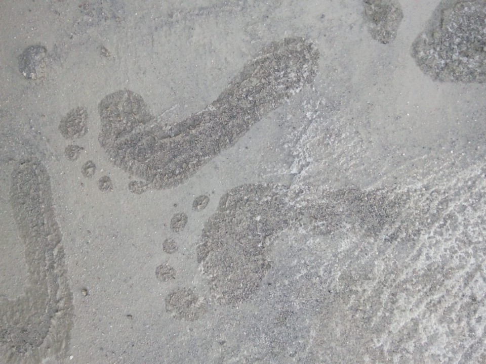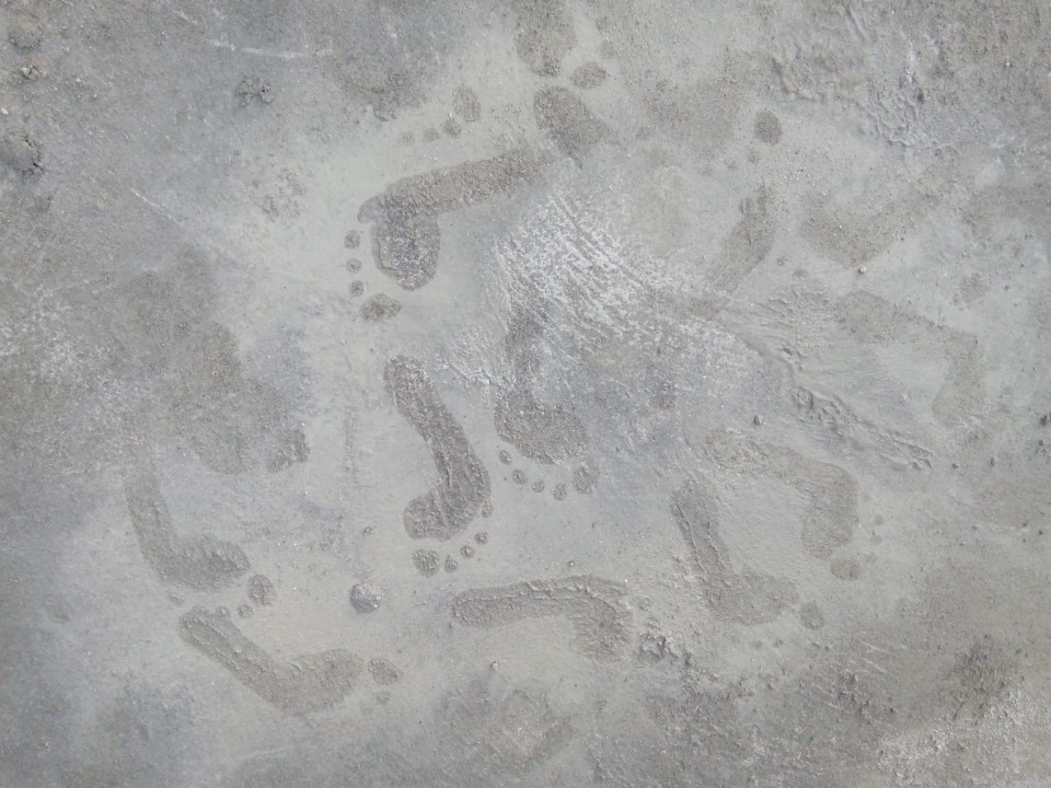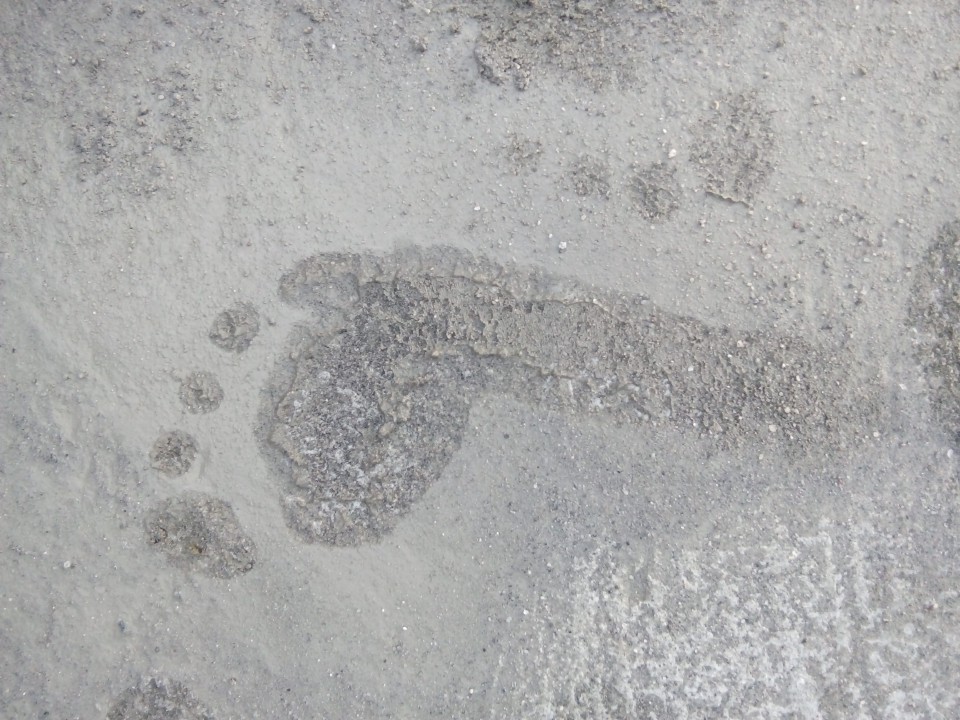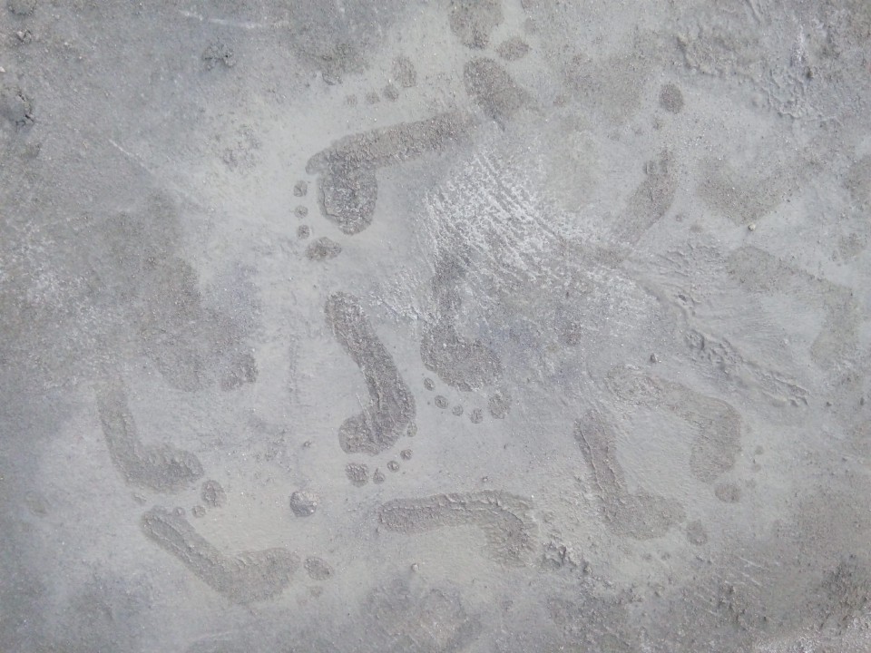 Barefoot in wet cement