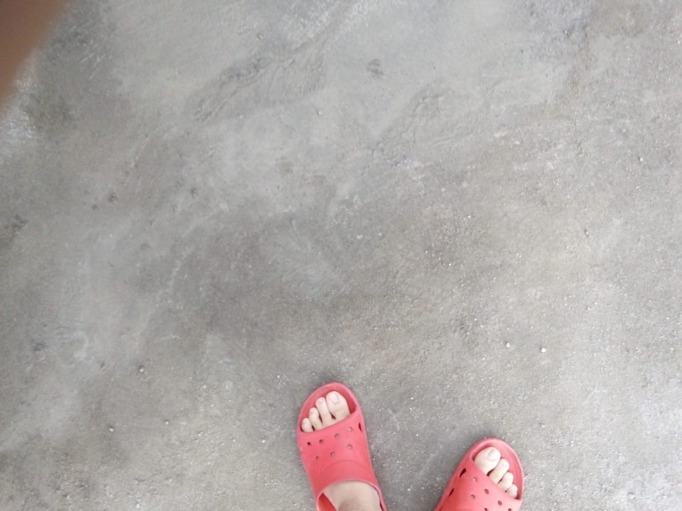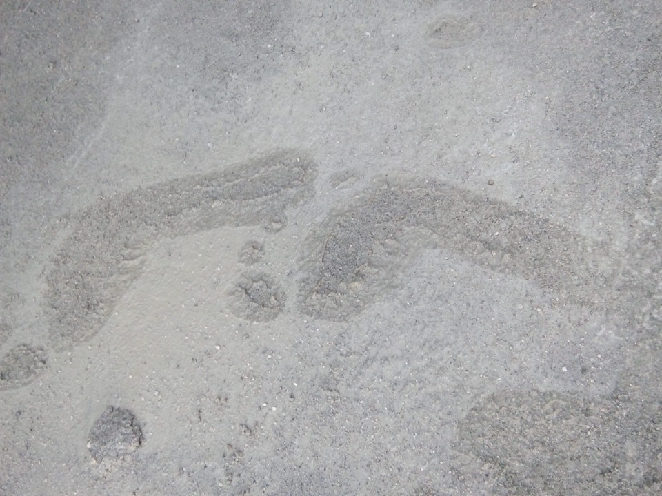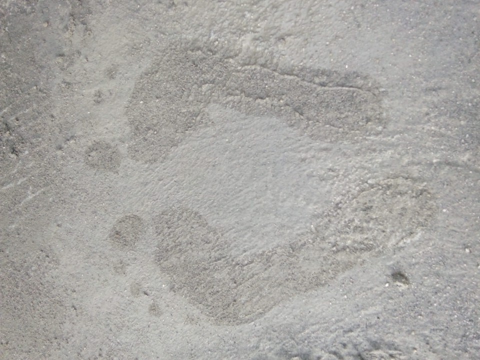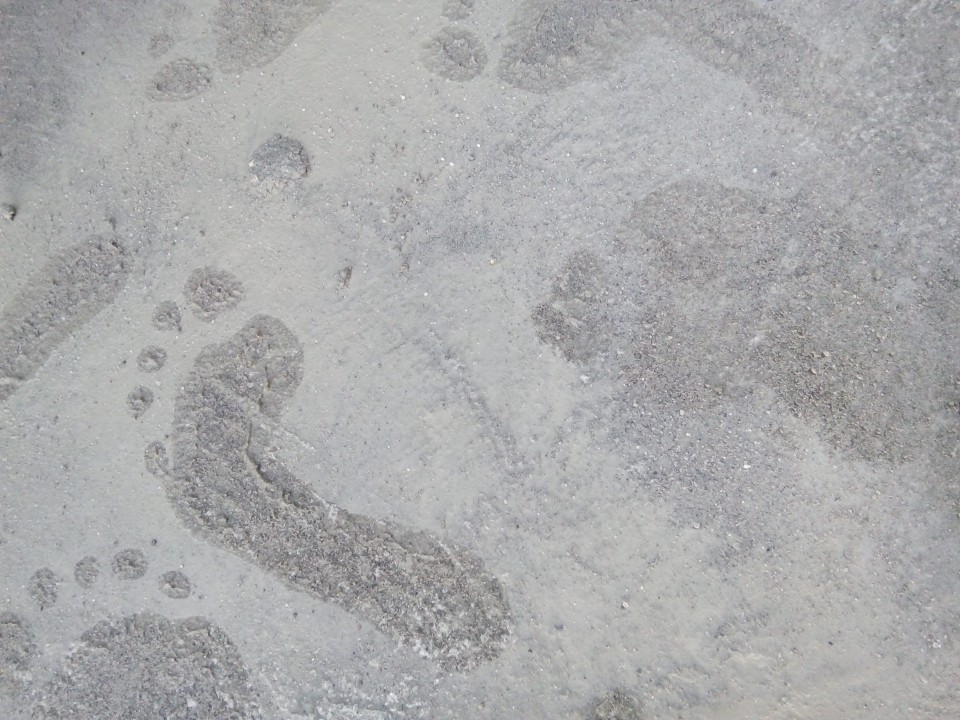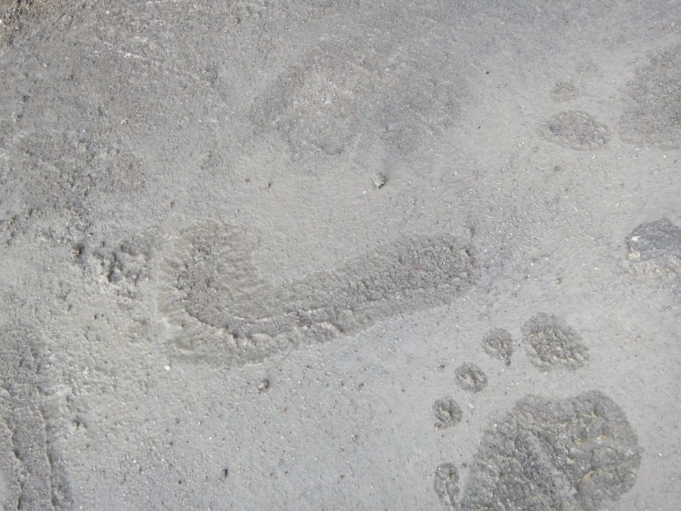 Barefoot in wet cement