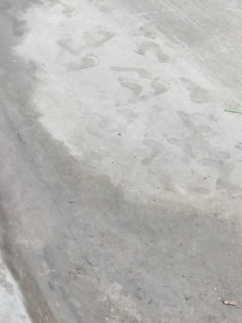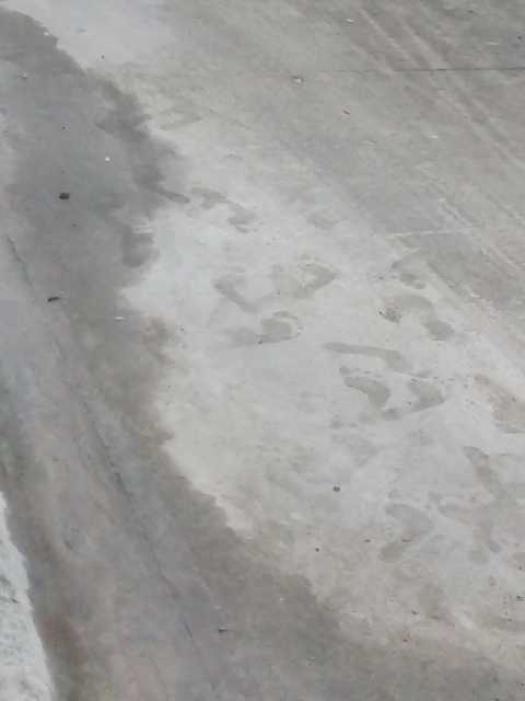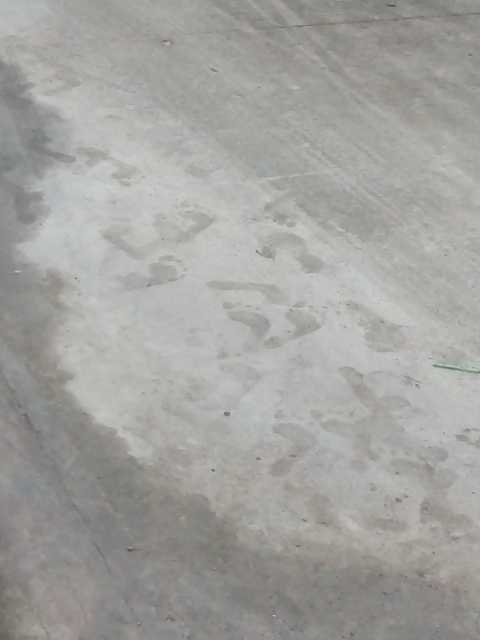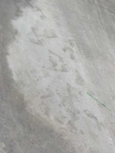 Barefoot in wet cement